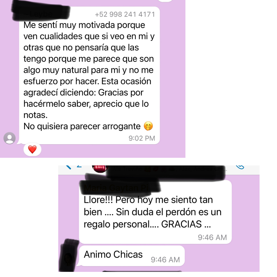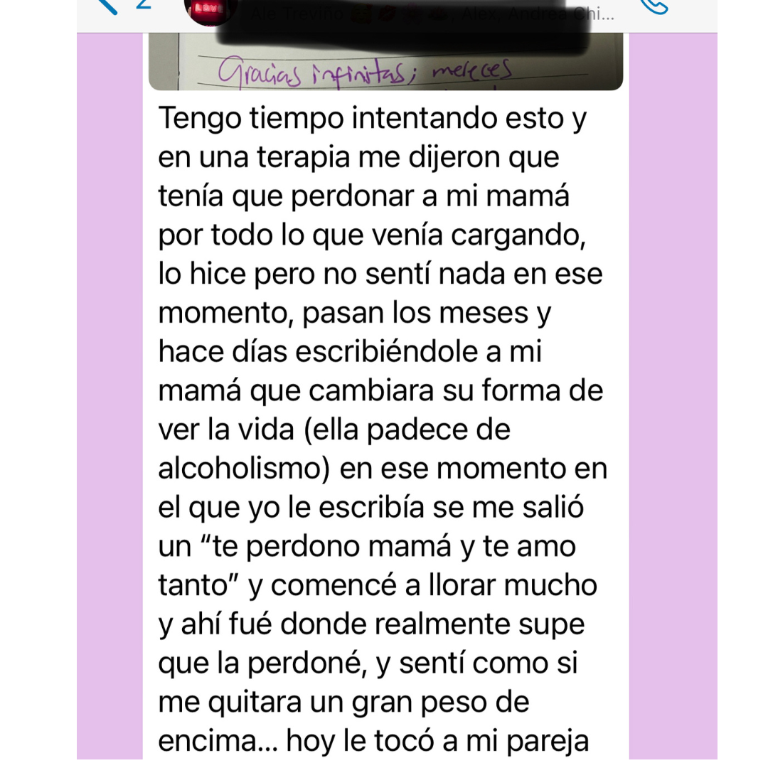 “Me ha ayudado a resolver mis miedos, he avanzado en mi crecimiento como mujer, y me ayuda en mi proceso de rescatarme a mis 40 años...”