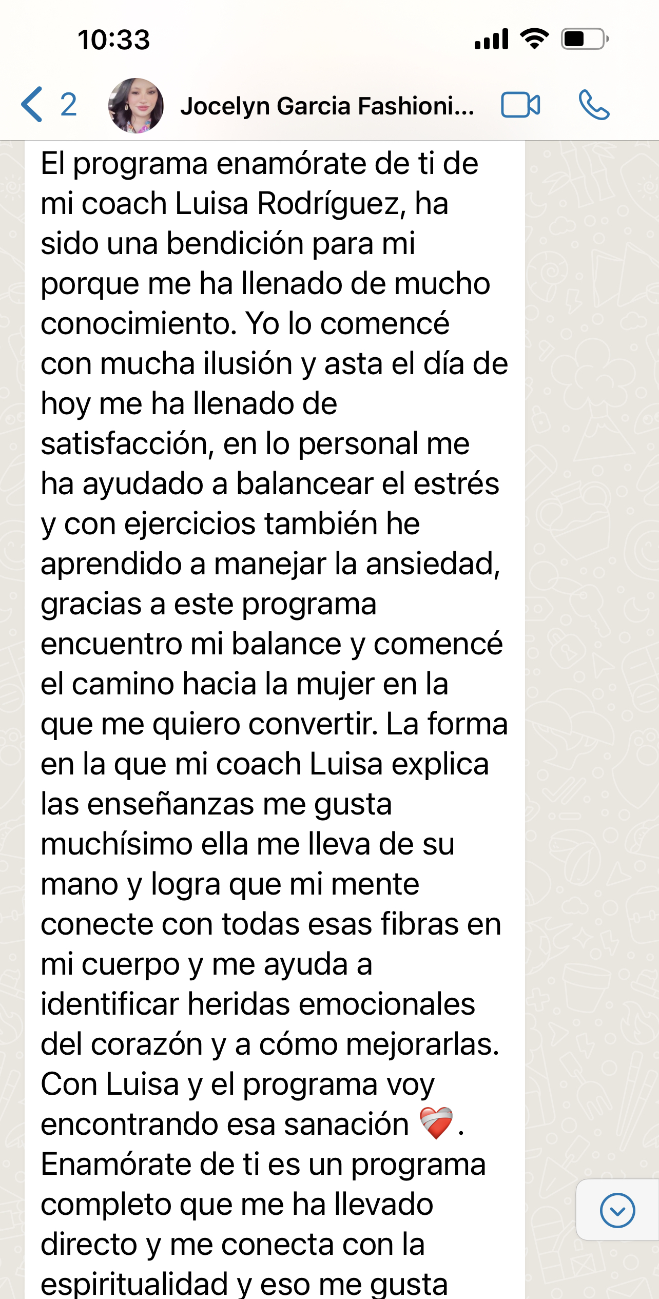 "El programa de Luisa ha sido increible para mi; me ha ayudado a gestionar mis emociones , he crecido como persona y ha crecido mi negocio."
